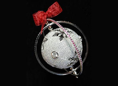 Z kolei najdroższą błyskotką choinkową na świecie jest bombka, której wartość szacuje się na blisko 390 000 zł. Wykonana jest z 18-karatowego białego złota, pokrywa ją ponadto półtora tysiąca olśniewających diamentów. Otoczona jest przez dwa pierścienie z 18-karatowego białego złota wysadzane 188 czerwonymi rubinami. Ręczne wykonanie tej bombki zajęło prawie rok. Została ona zaprojektowana przez Marka Husseya, właściciela 30-letniego, rodzinnego biznesu Hallmark Jewellers.