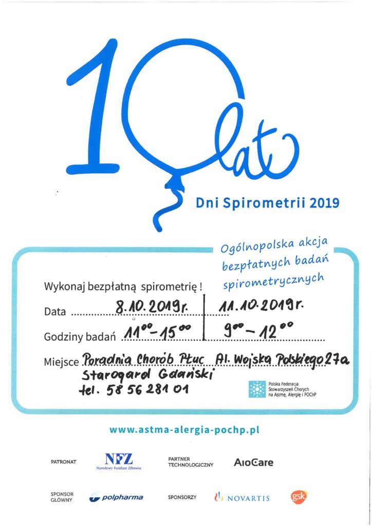 W 2019 roku hasłem kampanii jest „Breathe Clean Air”. Oddychanie czystym powietrzem przyczynia się do poprawy stanu zdrowia osób z alergią, astmą i POCHP.  W Polsce do hasła Oddychaj czystym powietrzem dodajemy kolejne „ Zatrzymaj astmę i POCHP”. Obecnie na choroby obturacyjne płuc, choruje ponad 6.000.000 Polaków. Połowa chorych na astmę i 70% chorych na POCHP nie wie o swojej chorobie. W ciągu 9 lat w ramach Dni spirometrii udało się przebadać ponad 56.000 pacjentów. Ponad 10.500 osób miało w badaniu spirometrycznym obturację i otrzymało list do swojego doktora z prośbą o wdrożenie dalszej diagnostyki w kierunku astmy lub POCHP.